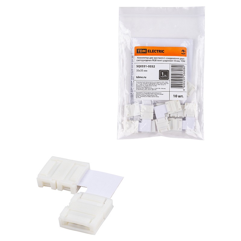 Коннектор для жесткого L-соединения двух светодиодных RGB лент шириной 10 мм, TDM